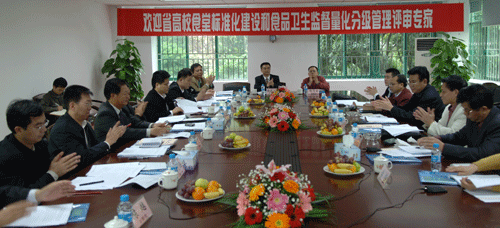 受廣東省教育廳、衛生廳的委托,1月8日下午,省高校食堂標準化建設和食品衛生監督量化分級管理評審專家組來我校檢查指導工作。專家組以汕頭大學醫學院總務處副處長楊輝明為組長,南方醫科大學后勤保障中心總經理楊紹軍為副組長,組員有惠州學院后勤集團副總經理張志章、嘉應學院后勤處副處長金沛新、東莞理工學院后勤集團飲食中心主任方創勝,深圳市衛生監督所食品衛生科副主任醫師黃堅陪同評審。 評審會在后勤樓209...