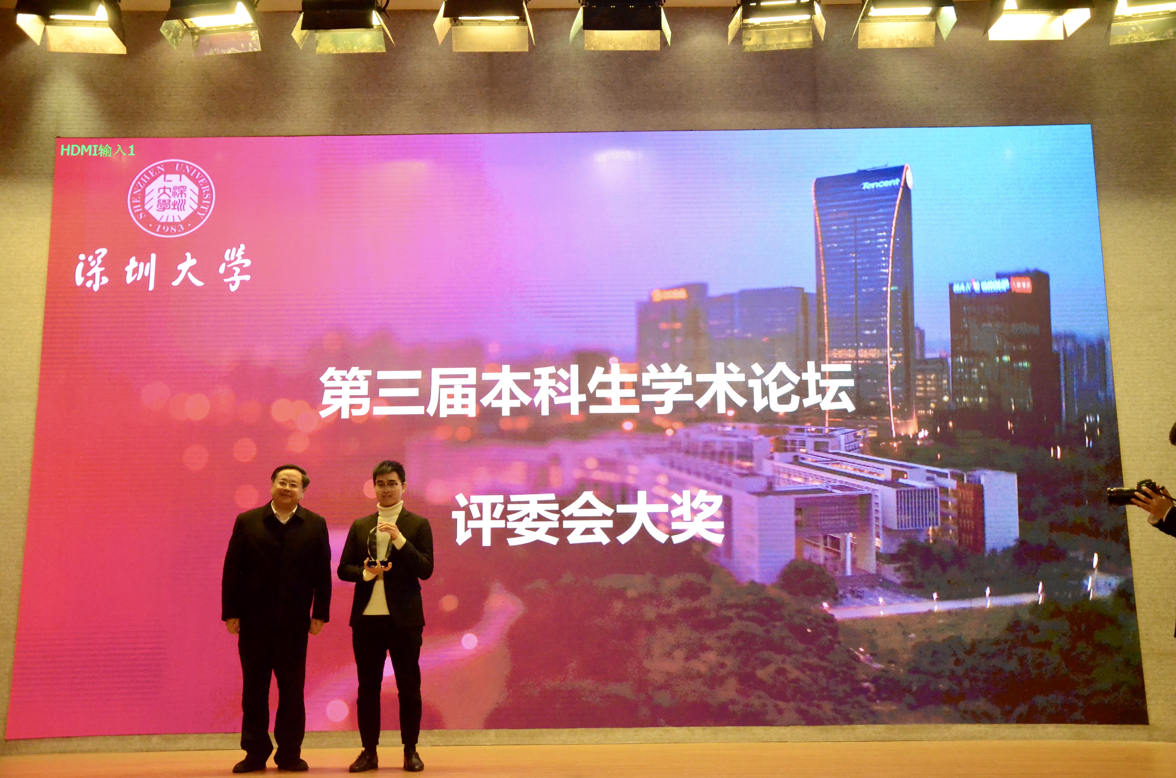 深圳大學(xué)本科生學(xué)術(shù)論壇深圳大學(xué)本科生學(xué)術(shù)論壇以“創(chuàng)新·研究·交流”為主題,以“培養(yǎng)創(chuàng)新能力、激勵(lì)學(xué)術(shù)研究、促進(jìn)學(xué)術(shù)交流”為宗旨,是代表深圳大學(xué)本科生最高水平的年度學(xué)術(shù)盛會(huì),是本科生科技創(chuàng)新與學(xué)術(shù)交流平臺(tái)。本屆學(xué)術(shù)論壇由教務(wù)部、校團(tuán)委協(xié)同組織,獲獎(jiǎng)?wù)撐氖菑?020年“荔園挑戰(zhàn)”創(chuàng)新創(chuàng)業(yè)大賽學(xué)術(shù)賽道本科生論文類成果作品中擇優(yōu)產(chǎn)生。自10月啟動(dòng)以來(lái),共收到投稿論文126篇,論文涉及機(jī)械與控制、信息技術(shù)與數(shù)理、生命科學(xué)、能源化工、經(jīng)濟(jì)管理、哲學(xué) 社會(huì) 法律 教育、文學(xué)共7個(gè)組別,12月6日決賽共評(píng)出特等獎(jiǎng)4名、一等獎(jiǎng)9名、二等獎(jiǎng)12名、三等獎(jiǎng)17名。本屆優(yōu)秀論文展演是“創(chuàng)?享荔園”深圳大學(xué)創(chuàng)新創(chuàng)業(yè)教育周“學(xué)術(shù)論壇板塊”系列活動(dòng)之一,本次展演邀請(qǐng)了4組特等獎(jiǎng)及4組一等獎(jiǎng)獲得者進(jìn)行現(xiàn)場(chǎng)7分鐘宣講,角逐最高單項(xiàng)獎(jiǎng)評(píng)委會(huì)大獎(jiǎng)以及最佳創(chuàng)意創(chuàng)新獎(jiǎng)、最具社會(huì)價(jià)值獎(jiǎng)、最佳學(xué)術(shù)風(fēng)范獎(jiǎng)、最佳學(xué)術(shù)普及獎(jiǎng)五類單項(xiàng)獎(jiǎng)。