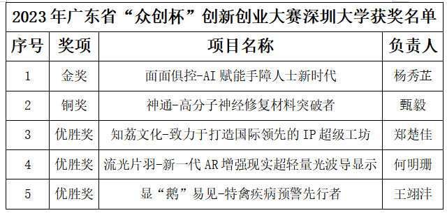 深圳大學在2023年廣東“眾創杯”創業創新大賽斬獲金獎!