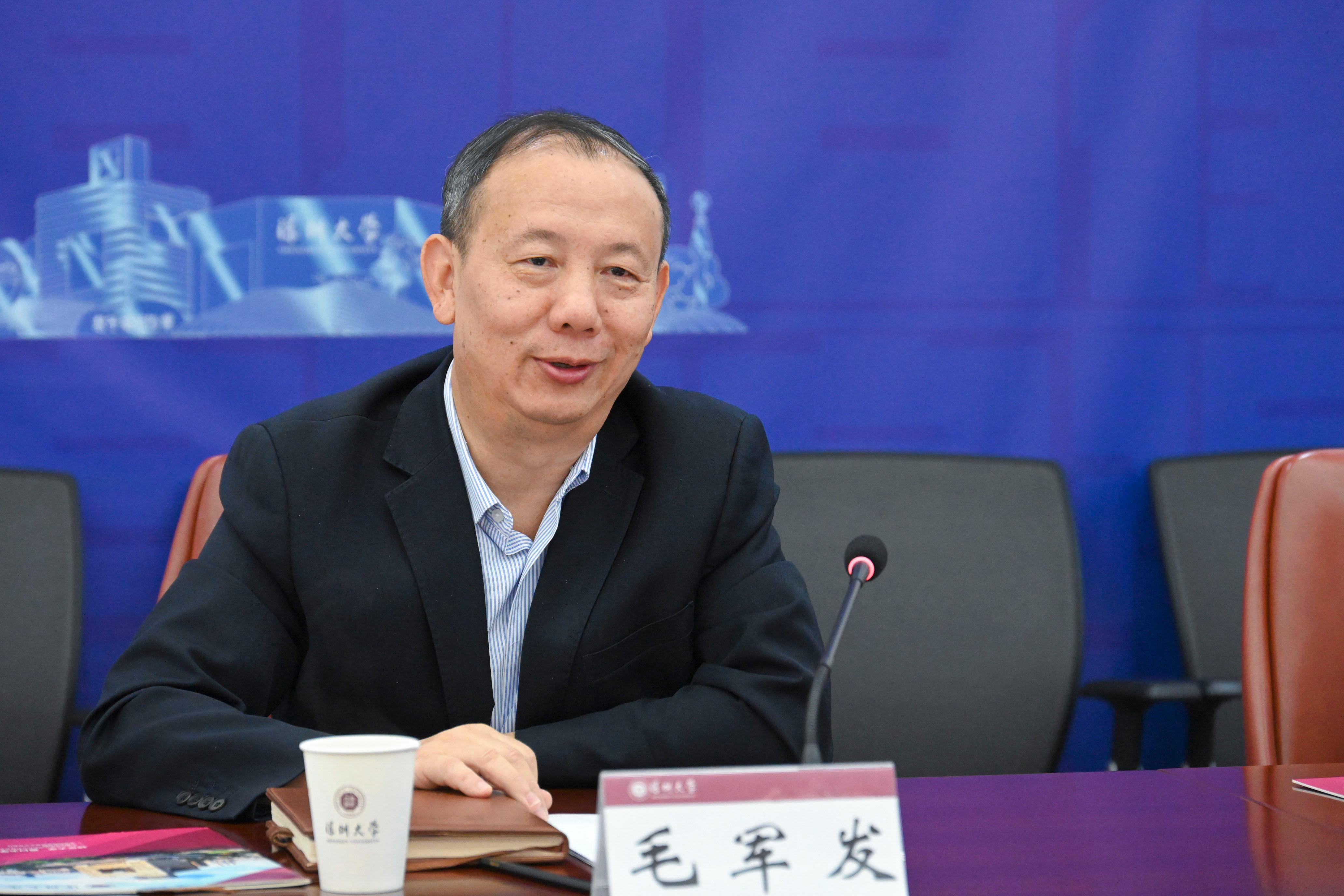 毛軍發在致辭中表示,深圳大學緊隨特區,秉持敢為人先、改革創新的辦學理念,近年來快速發展,特別是進入新時代以來,學校實施高水平大學建設發展戰略,成為內地進步最快的大學之一,綜合實力得到全面快速提升,已經成為一所特色鮮明、實力雄厚、在國內外具有良好聲譽和重要影響力的高水平綜合性大學。近年來,深圳大學國際化程度不斷提高,目前與境外290所高校(機構)建立了交流合作關系,遍布全球55個國家和地區,香港學院、東京學院、沙特孔子學院相繼成立招生。當前,深圳大學正處于加快創建世界一流綜合性大學和新時代中國特色社會主義標桿大學的關鍵時期,期望在研究生招生、學科建設、國際化發展等方面取得新的更大的進步。