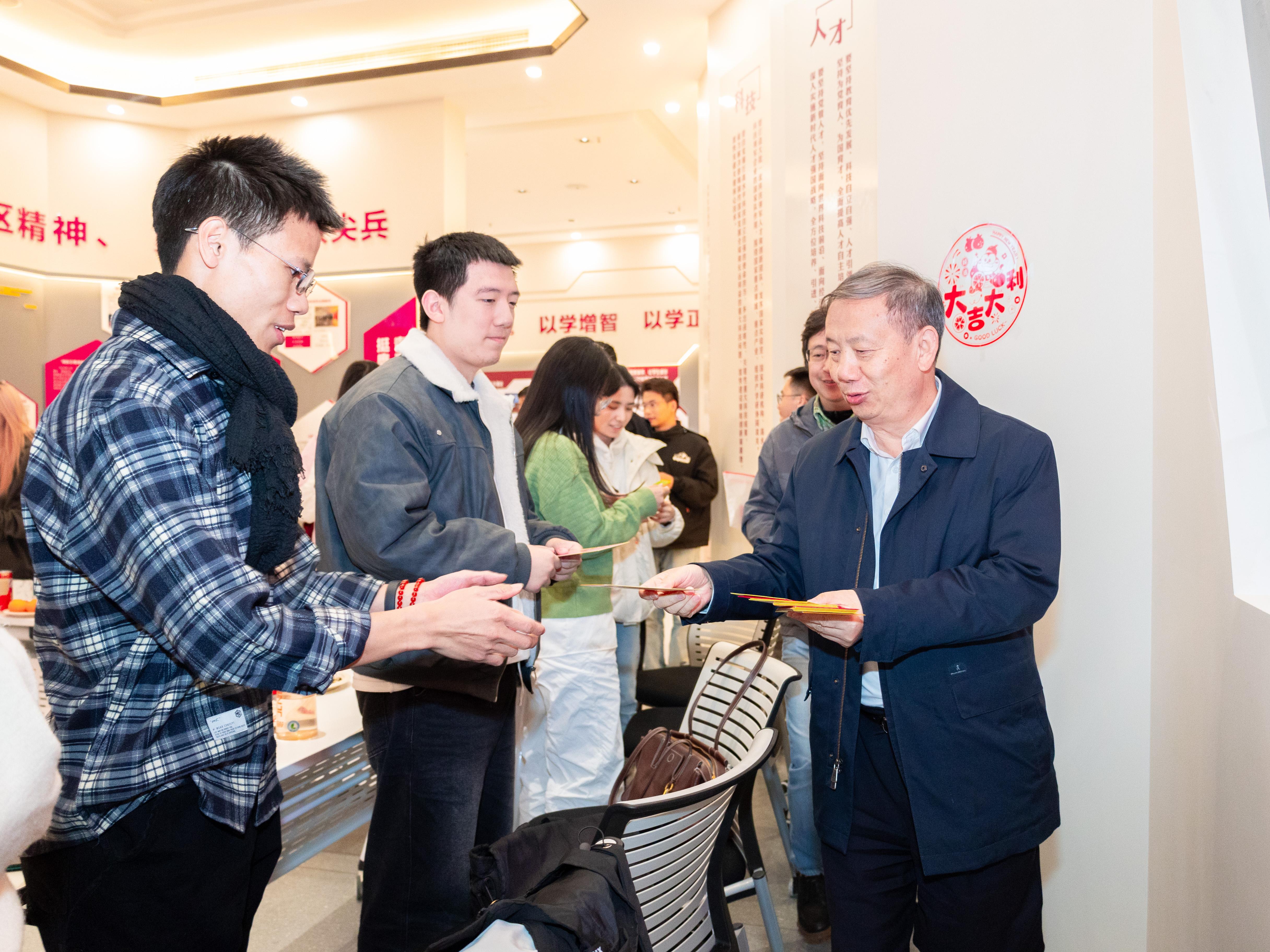“論文寫得還順利嗎?”“準備考哪一類崗位?”汪永成十分關心同學們的學業和擇業情況,在交談中仔細詢問同學們的科研進度、就業意向等情況。他表示,留校期間如果有學習和生活上的需求,都可以向學校和學院反饋,學校將盡可能為大家提供幫助,“校園也是家園,大家在學校也同樣會度過一個祥和圓滿的春節!”汪永成囑咐同學們,在奮力奔向新年新目標的同時,也要注意勞逸結合。
