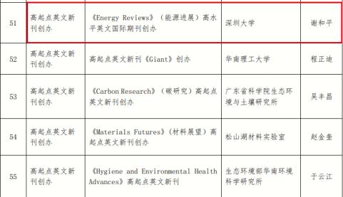 近日,廣東省科學(xué)技術(shù)廳公布了2023年度高水平科技期刊建設(shè)擬立項(xiàng)目清單,深圳大學(xué)土木與交通工程學(xué)院謝和平院士牽頭創(chuàng)辦的國(guó)際期刊EnergyReviews(能源評(píng)論)獲批“高起點(diǎn)英文新刊創(chuàng)辦項(xiàng)目”,資助經(jīng)費(fèi)200萬(wàn)元,執(zhí)行期3年。