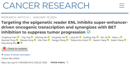 醫學部舒興盛副教授在Cancer Research發表表觀遺傳閱讀器ENL促進致癌轉錄研究成果