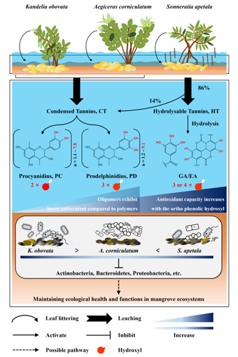 紅樹林濕地課題組揭示紅樹植物單寧的重要生理生態作用——抗氧化與抗菌功能背后的構效關系