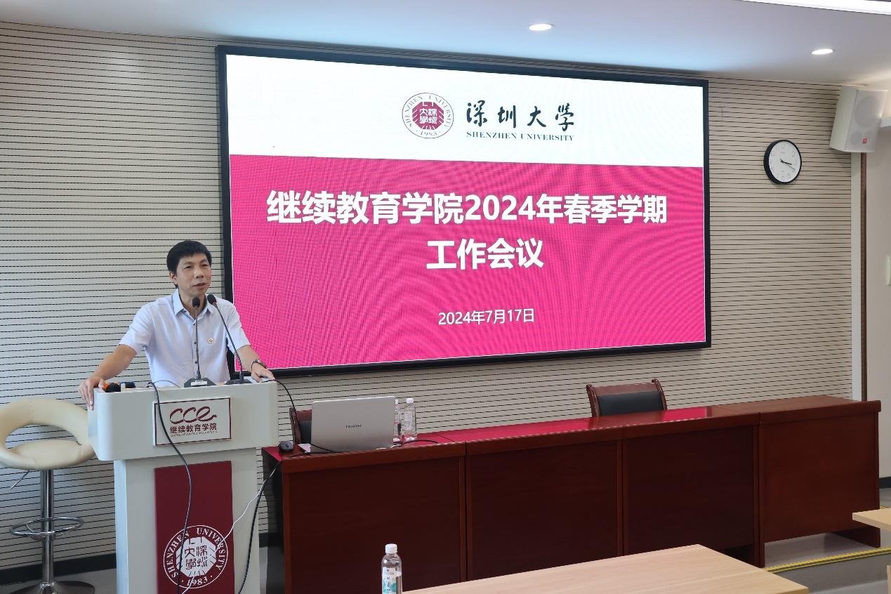 繼續教育學院院長李偉文主持召開了全院教職工會議。會上,他總結了學院上半年主要工作成果,對全體教職工的辛勤付出表示肯定,并詳細介紹了下半年工作計劃,對暑期工作提出具體要求。在談到日常工作要求及重要舉措時,李偉文強調了考勤記錄、加班管理、工作態度和制度建設等方面的重要性,要求全體教職工以更加飽滿的熱情和更加嚴謹的態度投入到工作中去。